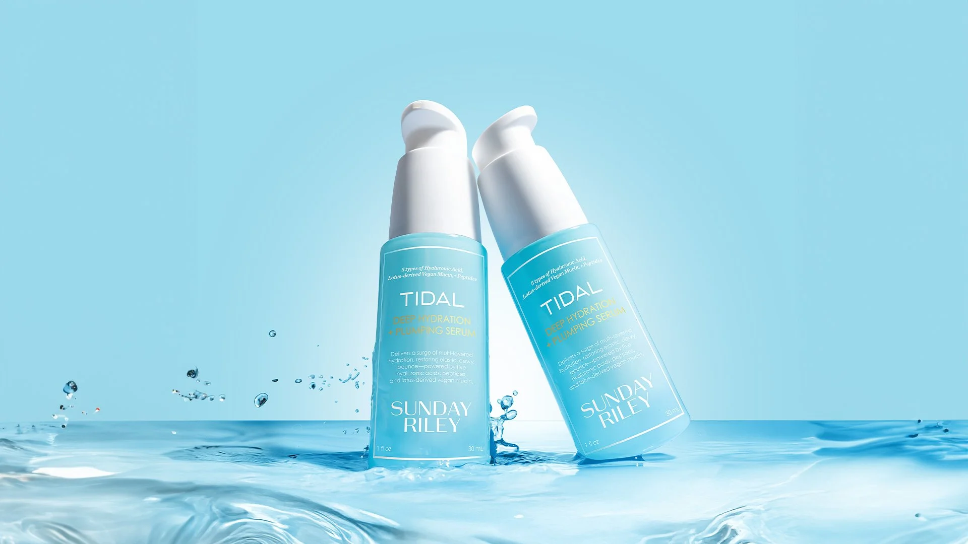 Concepted product and lifestyle photography for Sunday Riley’s new Tidal Deep Hydration and Plumping Serum product launch. Tidal is a hydrating serum that blends five hyaluronic acids, plumping peptides, and lotus-powered vegan mucin, drenching your skin for next-level glow.